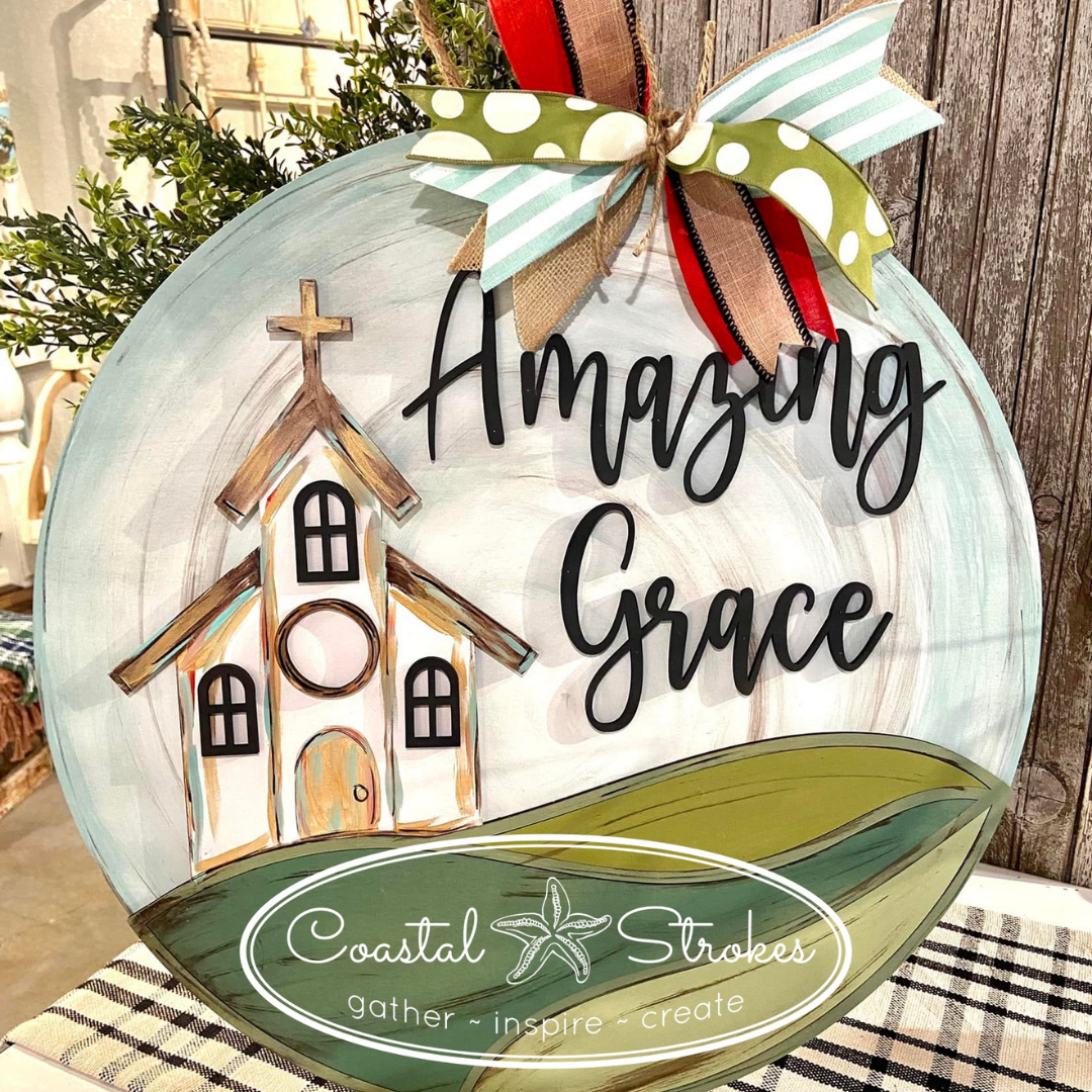 Order this beautiful Amazing Grace Door Hanger and learn how to paint at home by yourself or with a group of friends.
