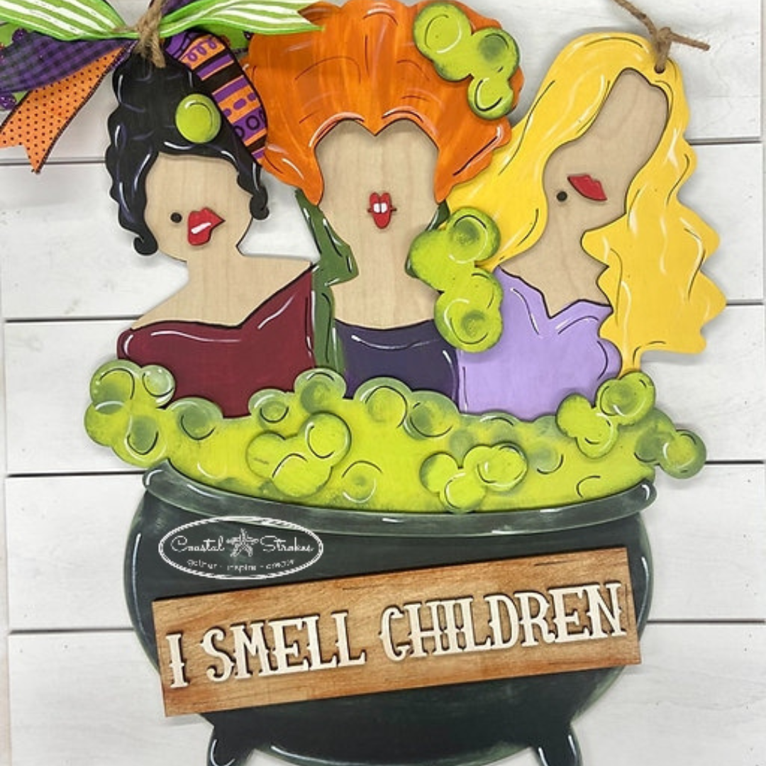 Order this cute I Smell Children 18" Door Hanger and learn how to paint at home by yourself or with a group of friends.