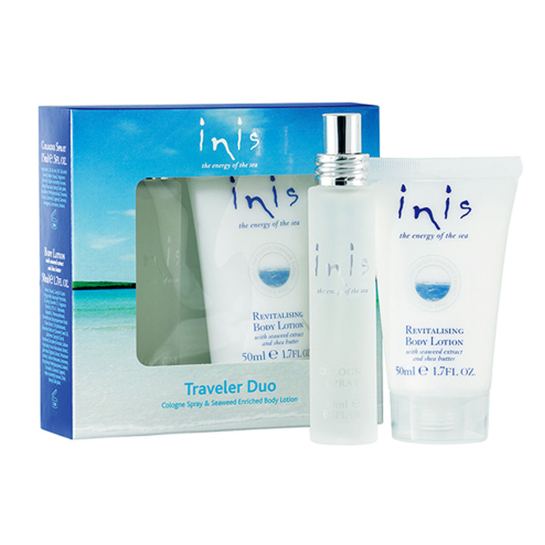 Great news! Now Inis is available to travel wherever you go with this special Inis Traveler Duo set. The refreshing scent that both men and women love is in spray and lotion forms. The travel size of the Inis the Energy of the Sea cologne measures 5 fl. oz. while the seaweed-enriched Body lotion measures 1.7 oz. With the scent of the sea traveling with you, it doesn't matter where you are to have this luscious scent available. In addition, this Inis Traveler Duo set is an easy way to sample the uplifting spray and lotion. The body lotion is filled with nutrient-rich seaweed extracts for lasting skin hydration.